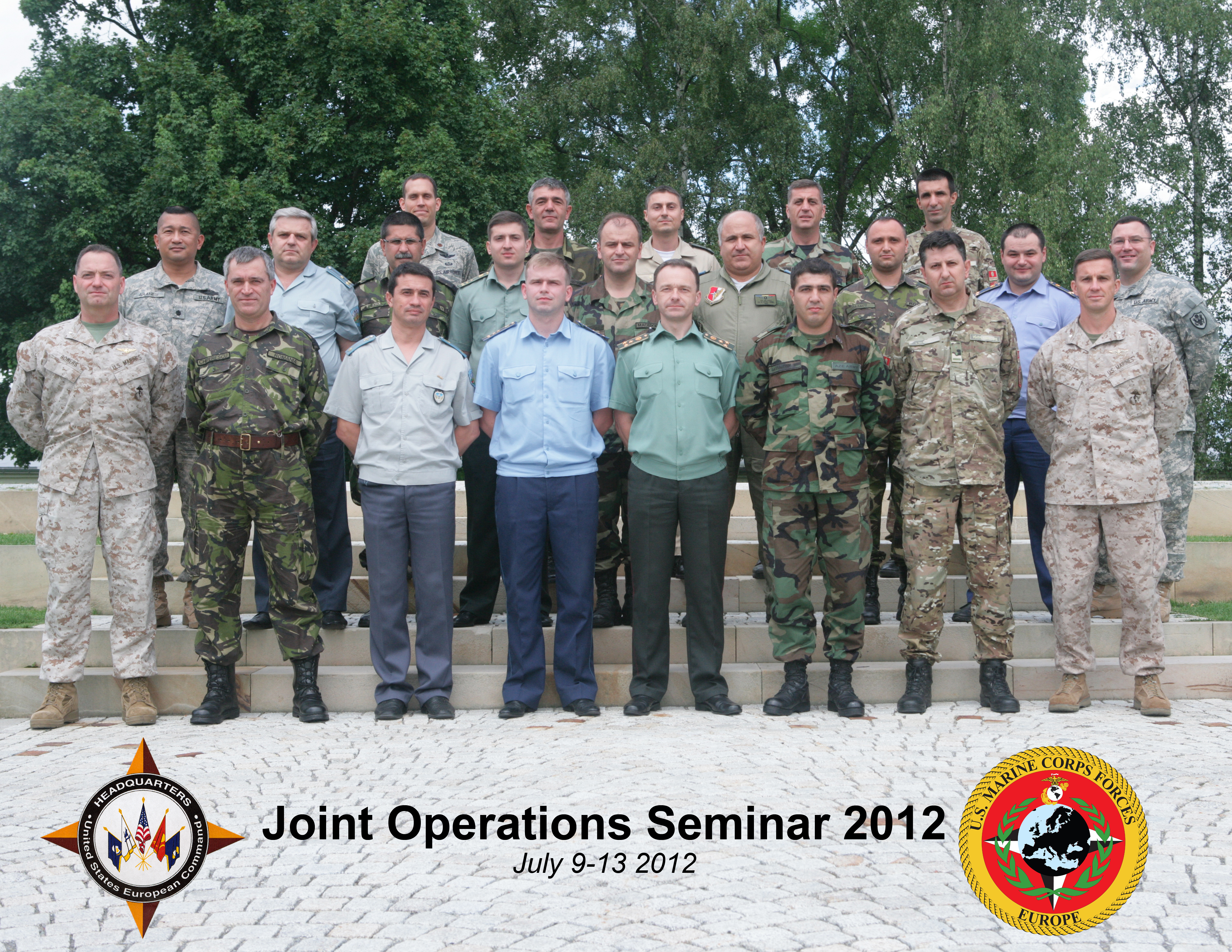 Marine Forces Europe hosted the Black Sea Rotational Force, Joint Operations Seminar II aboard USAG Stuttgart, Germany. The seminar consisted of a one day introduction/discussion on Joint Operations and a two day Joint Coalition Operations Analysis (JCOA) led Case Study of Operations Odyssey Dawn. The participants are 20 Field Grade officers from Azerbaijan, Bulgaria, Montenegro, Macedonia, Romania and Ukraine. In order to capture and provide the "Joint Force" optic we provided five discussion leads: two soldiers, two Marines and 1 airman.::r::::n::::r::::n::