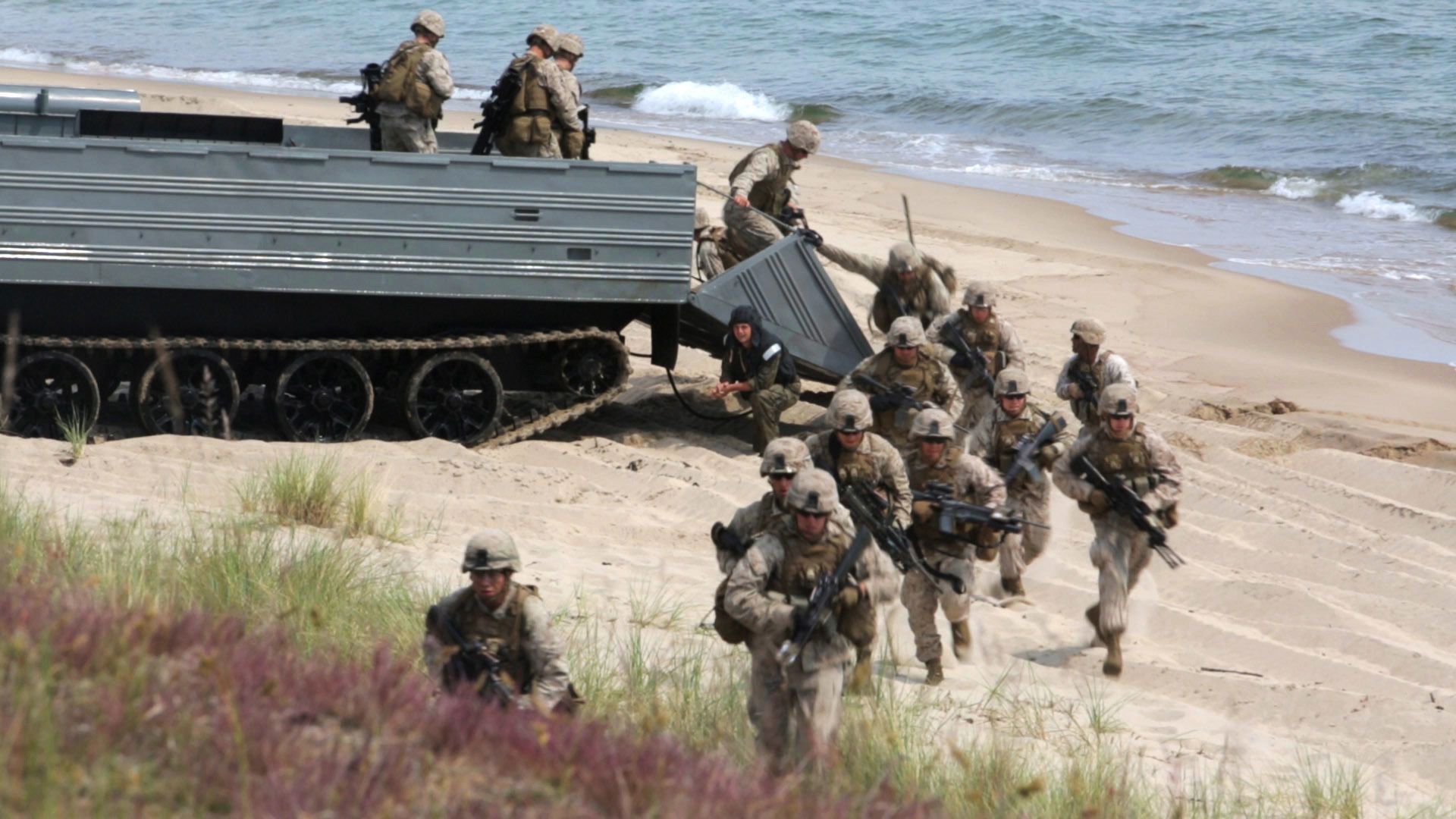 U.S. Marines from 1st Battalion, 6th Marine Regiment join an international Corps of Marines from Sweden, Finland, and the U.K. to conduct amphibious assaults on a beachhead in Ravlunda, Sweden, for local media outlets during BALTOPS 2015, June 11-13. The amphibious forces are part of 17 NATO Allies and partner nations that are integrated in air, land, and sea operations to improve their combined-force capability to work together and to respond to threats in the Baltic region.