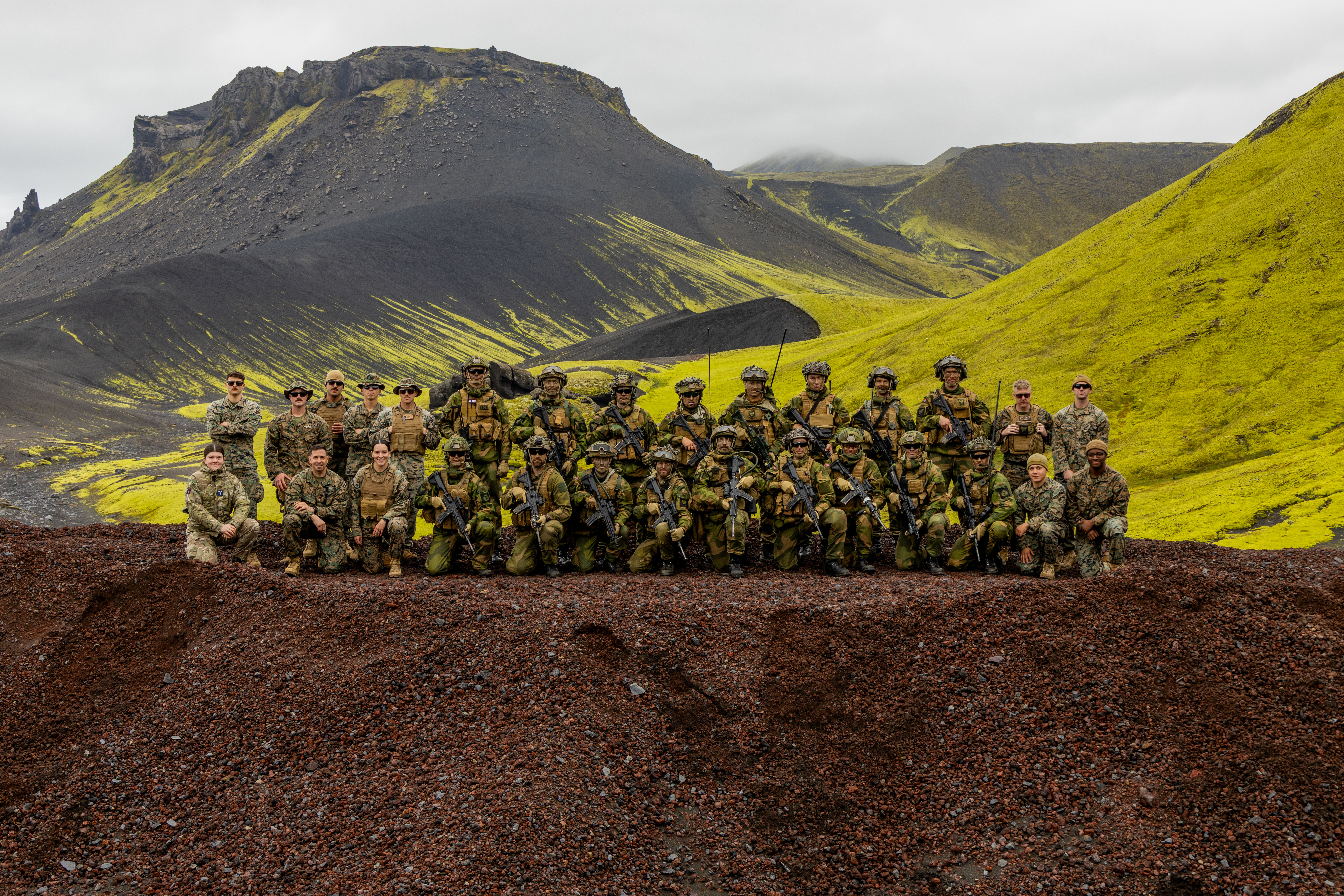 U.S. Marines and European allies pose for a group photo during an exercise at an undisclosed location within the European Theater, on Sept. 2, 2025.The Norwegian-led arctic operation was a first-of-its-kind mission to conduct rapid insertion of military assets to remote and austere location. The operation focused on NATO sea denial and maritime domain awareness capabilities and helps set conditions to quickly respond and defeat any crisis or threat to NATO allies.. (U.S. Marine Corps photo by Sgt. Addysyn Tobar)